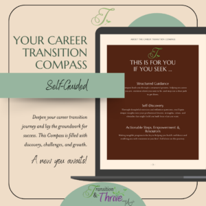 Welcome to your Self-Guided Career Transition Compass Download It Here There’s still time to reconsider your choice! The Coach-Guided video version is still available to you for just $20. Get more guidance from María Tomás-Keegan to make this journey of self-discovery deeper and more actionable. Learn More Here