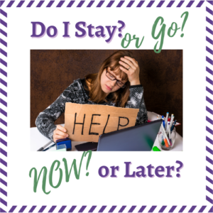 This Stay-Go | Now-Later Decision-making Tool can help you sort through the confusion about your choices, so you can make the decision before it’s made for you. Settle into a quiet space without distractions for a little while, and take this short assessment to see where you land.